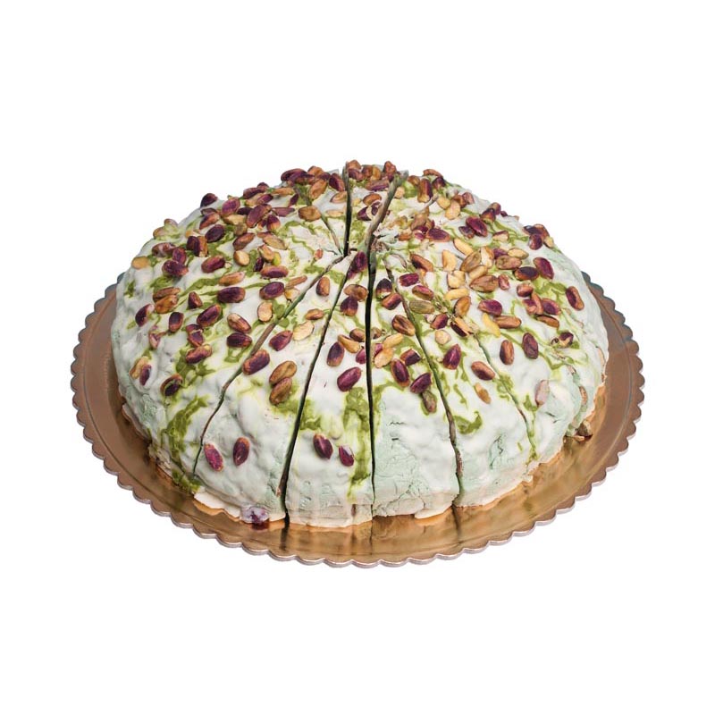KLEINE NOUGAT TORTE PISTACHIO Artikelnummer (SKU) A003436 Gruppe Süss Untergruppe Nugat Productgroep Nougat Torte Marke Les Maîtres Form Runde Merkmale Süss Verpackung Grobhandel