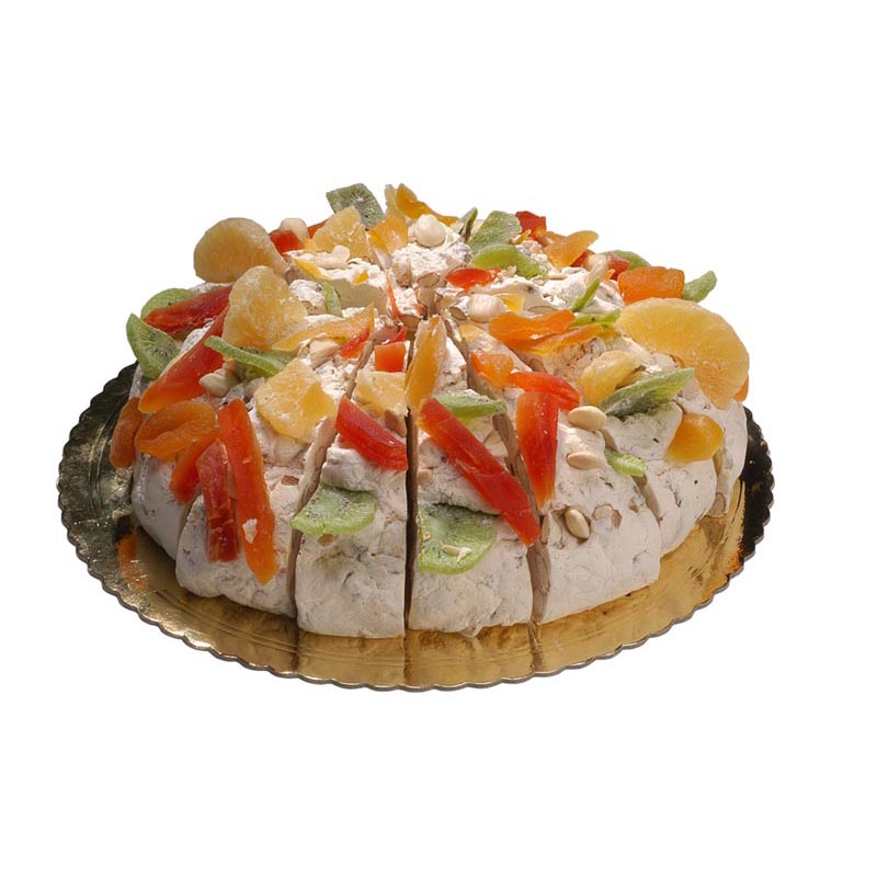 GATEAU DE NOUGAT FRUIT MIXTE Référence A003425 Groupe Sucré Sous-groupe Nougat Productgroep Tarte de nougat Marque Les Maîtres Forme Vers Caractéristiques Sucré Conditionnement En gros